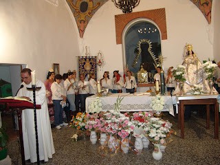 Está teniendo lugar en Adamuz la tradicional romería de la Virgen del Sol, que cada año congrega a cientos de fieles en torno a la ermita del Cerro, ubicada a 7 kilómetros de la localidad y a escasos metros de Algallarín. Tras la procesión que los vecinos le rindieron por este paraje repleto de eucaliptos y el espectacular paso por el humilladero, la patrona fue colocada presidiendo el oratorio y mirando hacia los feligreses. Esta celebración supone el fin de las fiestas y el disfrute del verano en esta localidad y anuncia el nuevo curso, la vuelta al trabajo y a la rutina. En la eucaristía, el párroco de la localidad, Pedro Nieto, recordó que “Dios no se fija en las apariencias, sino el reino, que pasa por situaciones humanas, y éstas por el corazón”. La misa estuvo cantada por el coro de la Virgen del Sol, que entonó varias canciones que verdaderamente emocionaron a los asistentes. El sacerdote manifestó que “la experiencia cristiana es primeramente una experiencia mariana”, y añadió que hay que sentir la experiencia de sentirse hijo de María e hijo de la Iglesia, “para, desde ahí, lanzarse a la experiencia, arriesgada, sin engaños, de ser hijos de Dios, hermanos de Cristo y discípulos del Señor”, y anunció que este el es trabajo que la Parroquia de Adamuz es la que va a ir haciendo a lo largo del año.